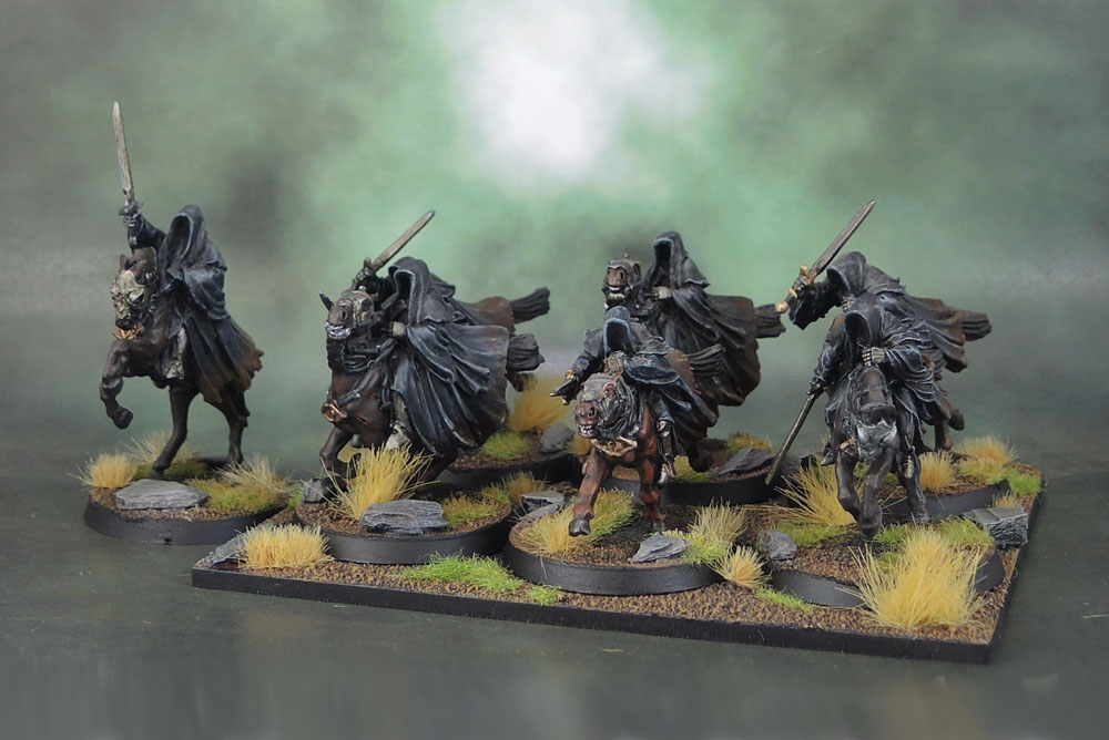 Today we have the next batch Nazgûl for The Fellowship of the Ring Scenario Project. Obviously, I featured five Nazgûl on foot yesterday, so today we have seven, all obviously mounted. Despite only having Seven of The Nine painted and complete, I think the group of them looks nicely sinister. Once again, a credit to the sculpting talents of the Perry Twins.
