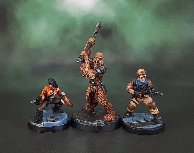 Just to cap off here is a picture of her alongside the other two player characters that we have been using – Fenn Signis and Gaarkhan the Wookiee. Now all three companions are complete – just in time to play the last two (or is it three?) scenarios (two, I think) – probably tonight or Friday. And yes, then all three of them will be retired for new characters as that will be the end of the existing campaign. Barely seems worthwhile in a way, but what are you going to do?