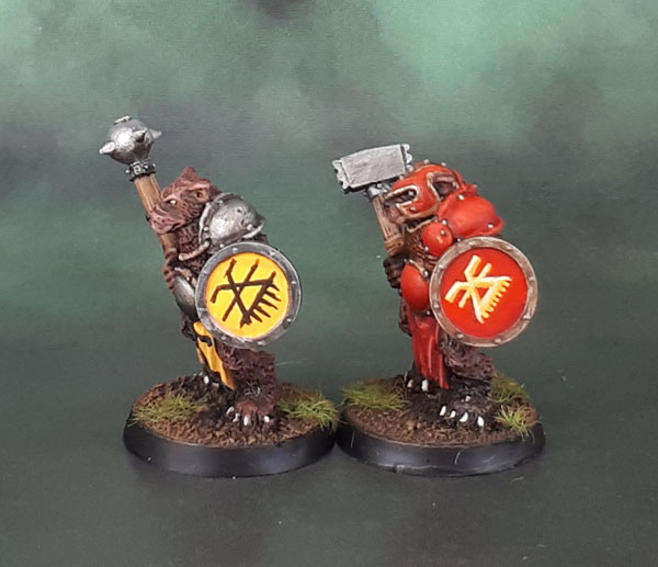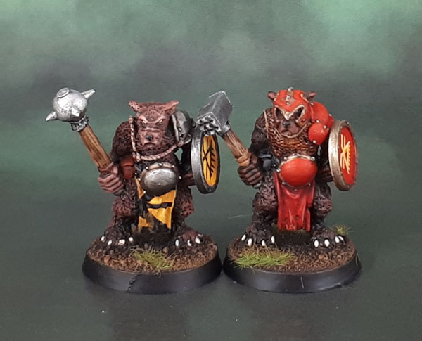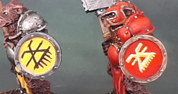 One thing I am particularly happy with is the freehanding on the shields, especially the red one. I originally worked up some Chaos Marauder shields, but then checked out what I’d given previous Khorngor and so went with the freehand route instead. I’ve got a couple others coming up who I’ll probably give those sculpted shields to, though. When I finish them. Interestingly, it seems that the upcoming Battletome for Beasts of Chaos features rules to Mark our Beastmen once again, so proper Khorngor (and the others) will be a thing on the tabletop again.