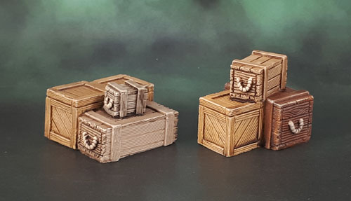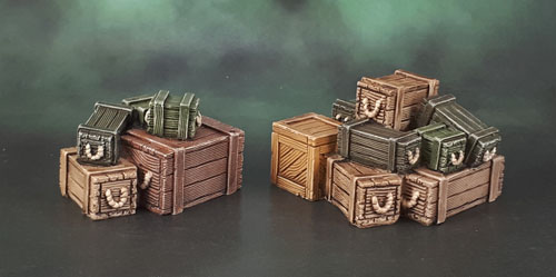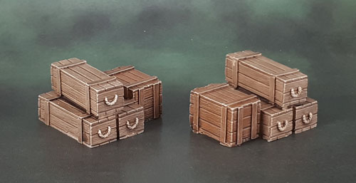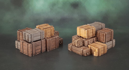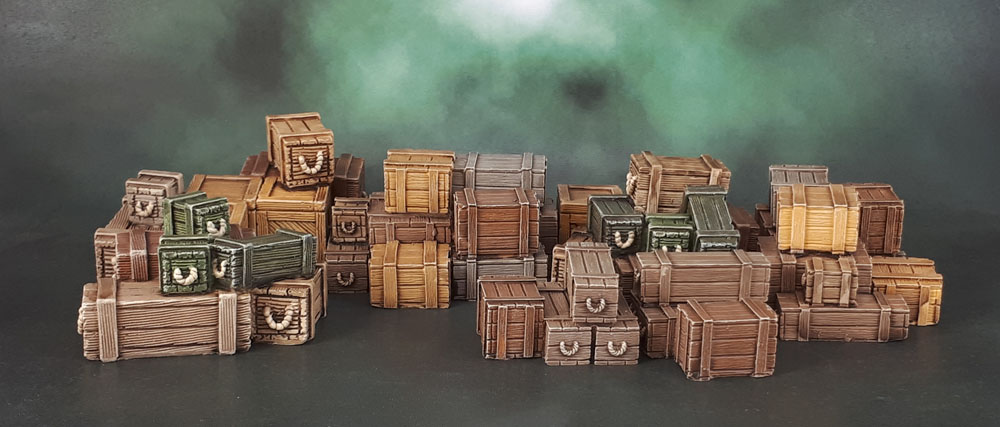 A bunch of crates today. One thing that my self-imposed “minimum 1 model per day, per month” this year has really helped along is getting various bits of scatter terrain done.