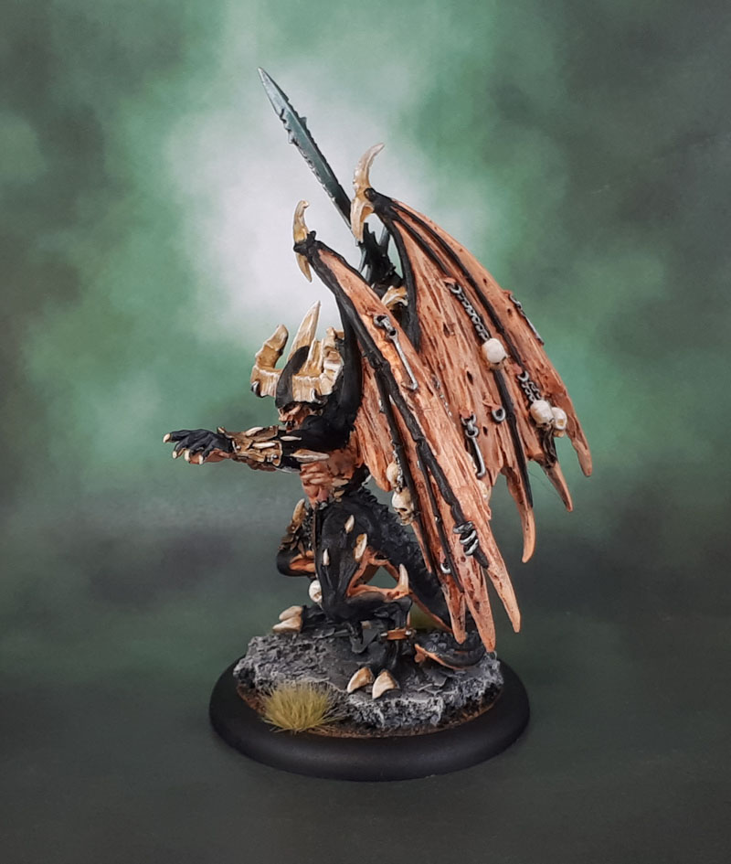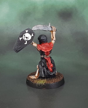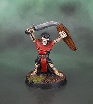 So simple then, from what I saw. Paint some undead. As it happened most conveniently, I had this skellington on my desk. Known as “Hellblade”, and originally one of the five interchangeable crew from the classic metal Undead Chariot. He had been sitting around, part painted and unloved for some time. Years in fact. I know I rebased him a few years ago, and there had been some repainting involved. So yesterday I re-repainted his bone cloaks into the red of the current Undead Army, did all of the necessary highlighting to his bones and black robes, and then hit the shield with some freehanding, and he was done. So after an hour or two, easy as that, a model that had sat around ignored for literally years was done. This is why I started doing these challenges, and also why I’ll try to tack on anyone else’s challenges that I happen to see that aren’t those “start-to-finish” ones that just leave me with more half-painted figures.