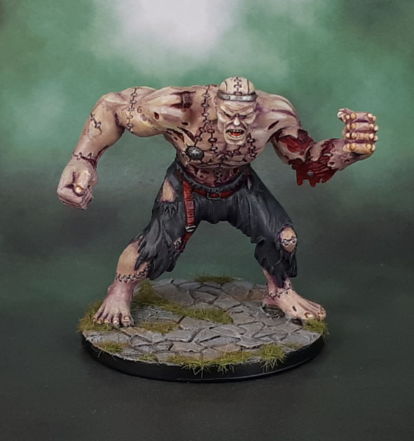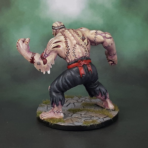 So, with Mister Hellblade the Skellington done, I looked around the table for something else that was achievable. The Flesh Golem was there. That bloody Flesh Golem from the Castle Ravenloft D&D boardgame that Marouda, Pyro and Orez played through back in 2012-3 or so, which is why I’ve (badly) sculpted flagstones onto his base. Yeah, he’s been sitting around for a long time, too. Mediocre story short, I also knuckled down and got him completed as well. Done.
