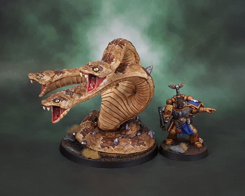 I often forget scale shots, especially for critters that look like they could be various sizes, so here it is, next to a Space Marine.