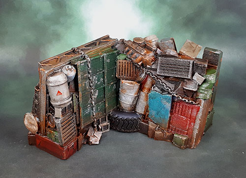 Back in December 2013 I picked up a couple of the “Bag O Crap” sets occasionally offered by Justin at Secret Weapon Miniatures. These are generally models who have failed his stringent QC process, and are sold off in these bags every so often. What you’ll get is a mystery! So I got a bunch of bases that I’ve stil not used – some with obvious bubbles and miscast issues, and others that I can see absolutely no issies with. I also got a few nicer large pieces of terrain. A destroyed tank turret, a flipped truck, a Star Wars-ish generator, and this (no link, it doesn’t appear to be listed on SWM’s site anymore!) The turret and truck are painted, the Generator is in a box somewhere. I thought I’d posted the painted turret and truck sometime, but apparently not? I’ll find them and post a pic sometime in the future.