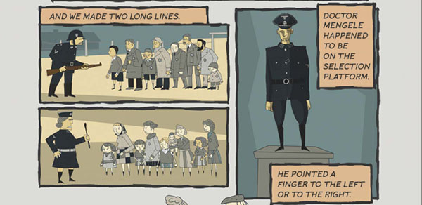 Little niggles – Martin’s story begins with the Polenaktion, though it doesn’t explain where Martin’s familiy originated from, which is something that would have the capacity to make the story a little more impactful, especially to younger readers that this graphic novel is aimed at. This is sort of rectified later, but I feel that not explaining it as part of the narrative causes the *full* impact of that story to be lost.