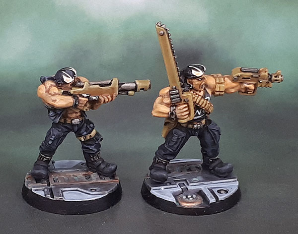 I’m pretty sure in later campaigns, the CC-oriented model was used to designate a juve starting with CC kit, later graduating to a full ganger and the right to carry a lasgun. I’ve got a vague memory about him having the sharpshooter skill as well (was that the name of it?) so it could be that the rifleman was painted first to be that ganger after picking up that skill in the first campaign and the CC happened in the second – and then the juve use in the third. I can’t recall – we played a LOT of Necromunda back in those days – and it was fucking glorious!