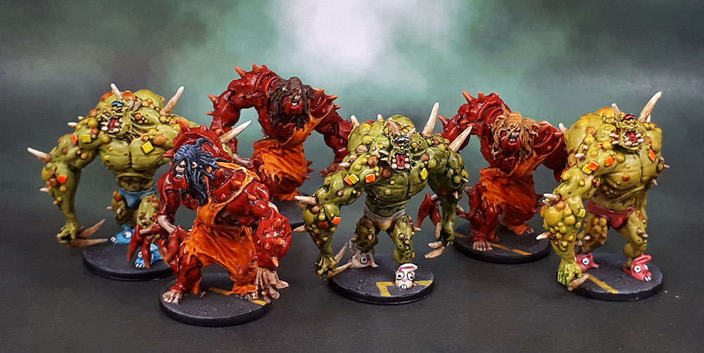 As with their Berserker brethren, these aren’t amazing models, but they’re quite decent, especially for boardgame monsters. These also have the benefit of fitting into the Nurgle force if need be as… I dunno? Plaguebeaers? Yeah, that’ll do it. They painted up pretty easily, were another fun (as opposed to shitty) experiment with the Contrast paints, and give me another trio “Squad” for September’s painting challenge. I’ll take that.