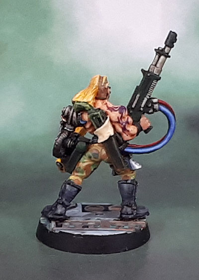 Today’s model is one of my favourites from the original Necromunda range. Sculpted by Gary Morley, this model is a good example to show that the guy really can sculpt well, and it’s probably worth noting that there is a story behind the obscenity that it the original Nagash sculpt. Anyways, this bounty hunter naturally needed to make it into my 1990’s gang (as a ganger).
