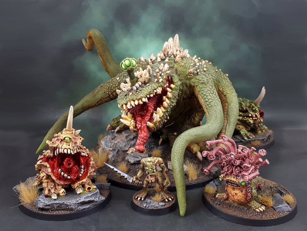 “Froghemoth” part seems to have become a deleteted reference now. I guess because “Frogehemoth” is apparently a real D&D thing. Something I only learned yesterday via accidently seeing one pop up on Amazon. When I saw it appear as a goal during the Kickstarter, I assumed (for some reason) that it was an original creation. More fool me to think that Reaper had any originality at all. They’re a decent company with generally nice-to-very good models and products (sticky Bones excepted), but let’s face it – pretty much everything they do is based on D&D or some other IP of someone else’s. I mean, we ran on GW for their lack of creativity and plethora of obvious pop culture references, but Reaper apparently just comb their way through the Players’ Handbooks and Monster Manuals and whatever other splat book they can get hold of…