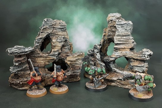 Like rather a lot of the scenic items I’ve been showing here recently, I picked these up ages ago – a couple of years, in fact. After getting some pretty sweet ready-to-use pieces on massive sale from the local Pet Warhouse (which all seem to have disappeared – before I could game with any of them or even photograph them all!) 😦 I thought I’d do one better and see what eBay had to offer. Turned out that eBay was actually pretty crap. While the price was alright, for my money I got four pieces, one of which arrived broken, made of a cheap, fragile resin, painted badly, and with smooth black internals visible. I mean, for your cheap Aquarium they were probably alright, but for scenery, I did the only thing I could do – put them in a tub and forgot they existed.