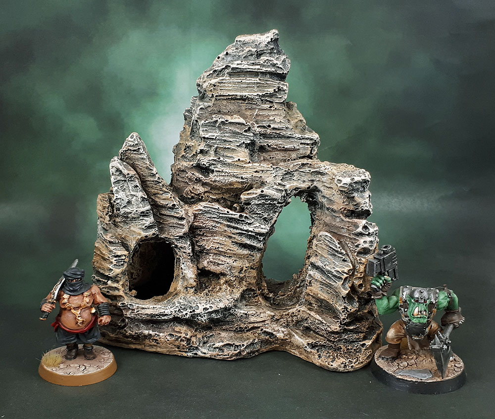 Like rather a lot of the scenic items I’ve been showing here recently, I picked these up ages ago – a couple of years, in fact. After getting some pretty sweet ready-to-use pieces on massive sale from the local Pet Warhouse (which all seem to have disappeared – before I could game with any of them or even photograph them all!) 😦 I thought I’d do one better and see what eBay had to offer. Turned out that eBay was actually pretty crap. While the price was alright, for my money I got four pieces, one of which arrived broken, made of a cheap, fragile resin, painted badly, and with smooth black internals visible. I mean, for your cheap Aquarium they were probably alright, but for scenery, I did the only thing I could do – put them in a tub and forgot they existed.