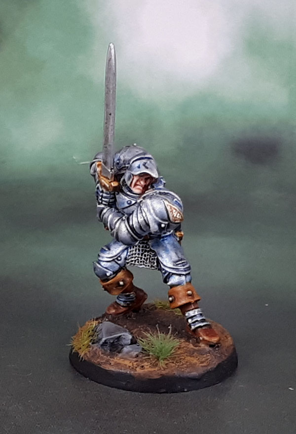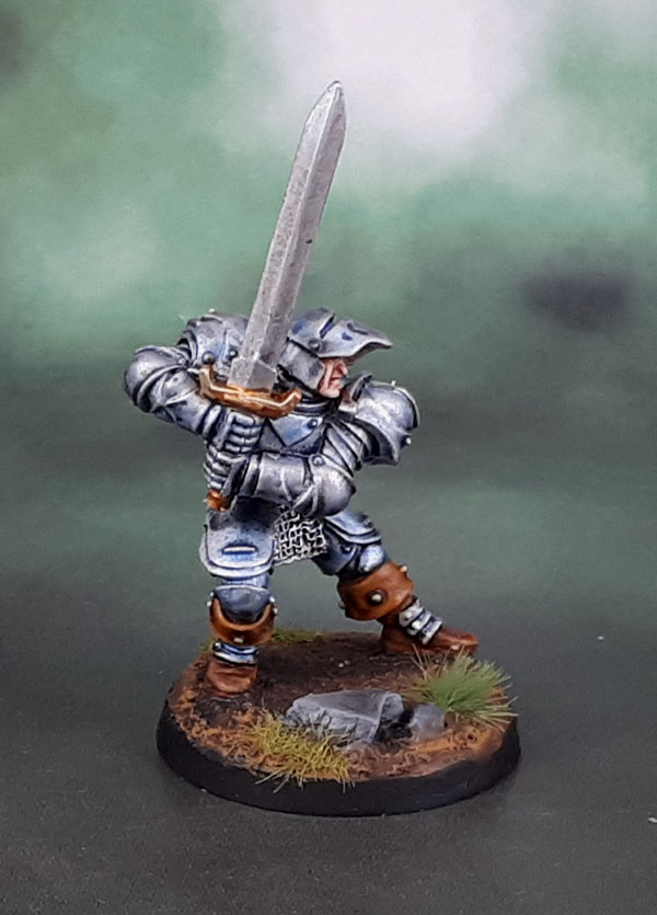 1. Always wondered how vallejo-air chrome-color would look on plate instead of a plane for example. Apart from the armor, I really like how his expression came out. Wearing a greatsword even as Lvl1, you know the character was destined for greatness. 😀