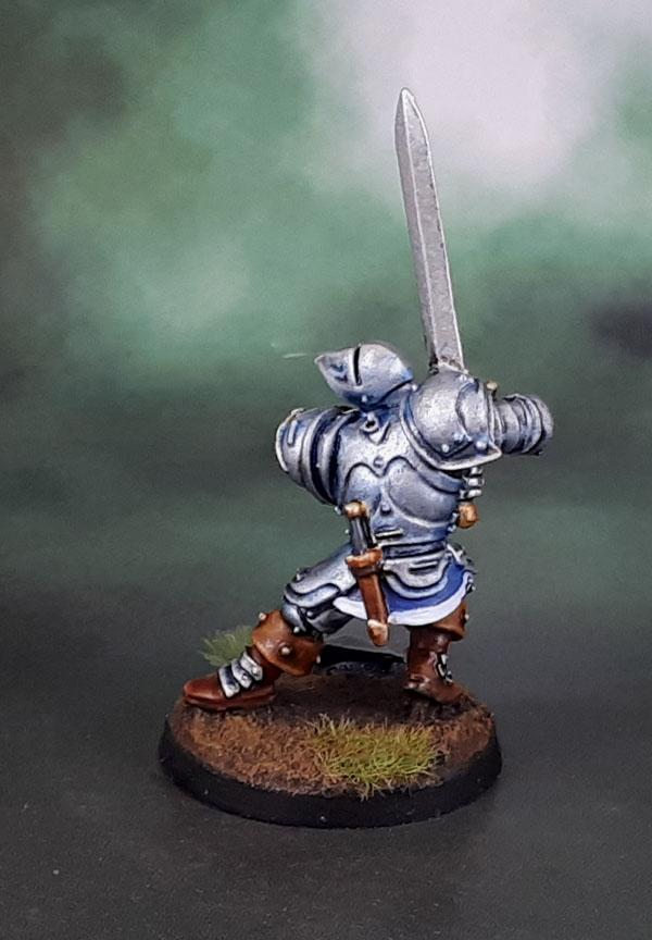 A bit of gold on the armour details and weapon guard, bright browns for his leather, and blue and white for the cloth, again because paladin. I’m not sure, but I think I may have another one (or even two?) of this model somewhere, so I’ll have to decide whether to paint it/them in a similar way as a unit, or go entirely different with something like gold/bronze/steel armour. Anyway, this guy was kept bright and clean, as befits a righteous paladin.