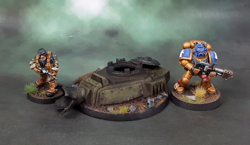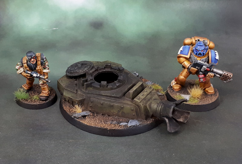 So anyway, Games Workshop proiduce a pair of kits with rather bombastic hero bases for their 40k and Age of Sigmar games. I’m not super keen on bases that place a model in too much of a particular spot. I prefer “anytime anywhere” bases rather than “specific moment captured in time” bases, and so this destroyed Leman Russ turret doesn’t really work well for me as a model base, but luckily it does work well for me as an Objective Marker. So that’s what I did with this one. That’s also why I’ve left it sans markings, to keep it a more generic piece rather than attached to any specific army. I really need to get my Imperial Guard models out to the War Room, and maybe even post them up here as an army when I get some time. Maybe I’ll have time to do that over the summer break, because I sure as fuck won’t be going to the beach this year!
