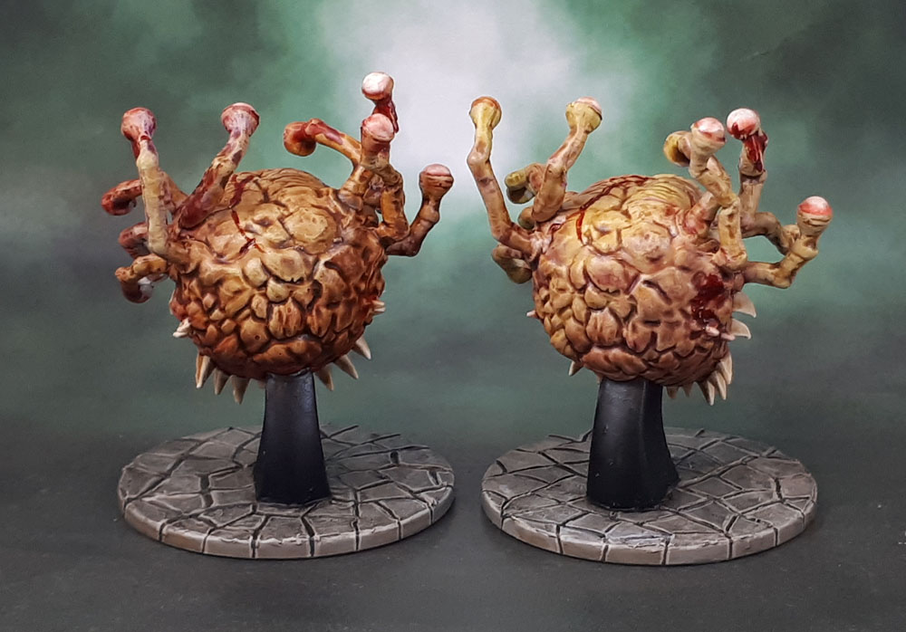 Here they are alongside their fellow ex-beholder mate from the same boxed set, the Death Tyrant. As with the Death Tyrant, the same sculpt is available as part of the Wizkids “Nolzur’s Marvelous Miniatures” line, albeit with removable/swappable eyestalks. Tarmor actually painted one of those not too long ago.
