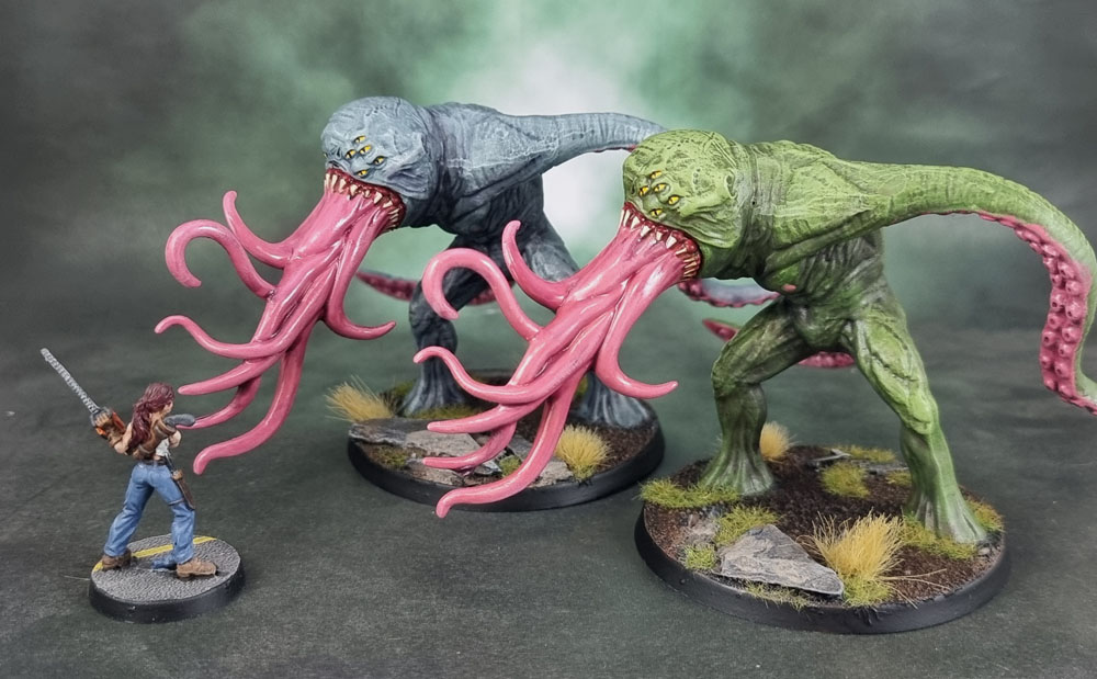 For my penultimate post of miniatures I finished in May for the Monster MAYhem painting challenge at Dead Dick’s Tavern and Temporary Lodging, I present you with a couple more garbage-tier Shadows of Brimstone models, completed last night on the 31st of May. The City of the Ancients core set only comes with one of these, but they did provide a freebie extra of many of the models as part of the KS bonuses, so I’ve painted both here. I painted one in greens for some strong contrast with the pinks of the tentacles, and the other with a kind of elephant-inspired grey, which also contrasts nicely with the pinks. I do find myself complaining a lot about these SOB miniatures (read that how you will!) and all I have to say on these two is that I gave them more effort than they deserve – and now they’re both done and good enough for a boardgame. Any further effort on my part would have been literally stealing work time from far better and more deserving models!