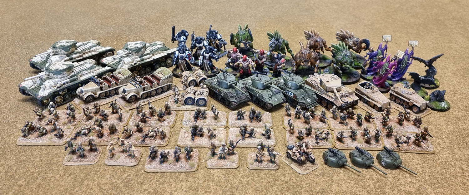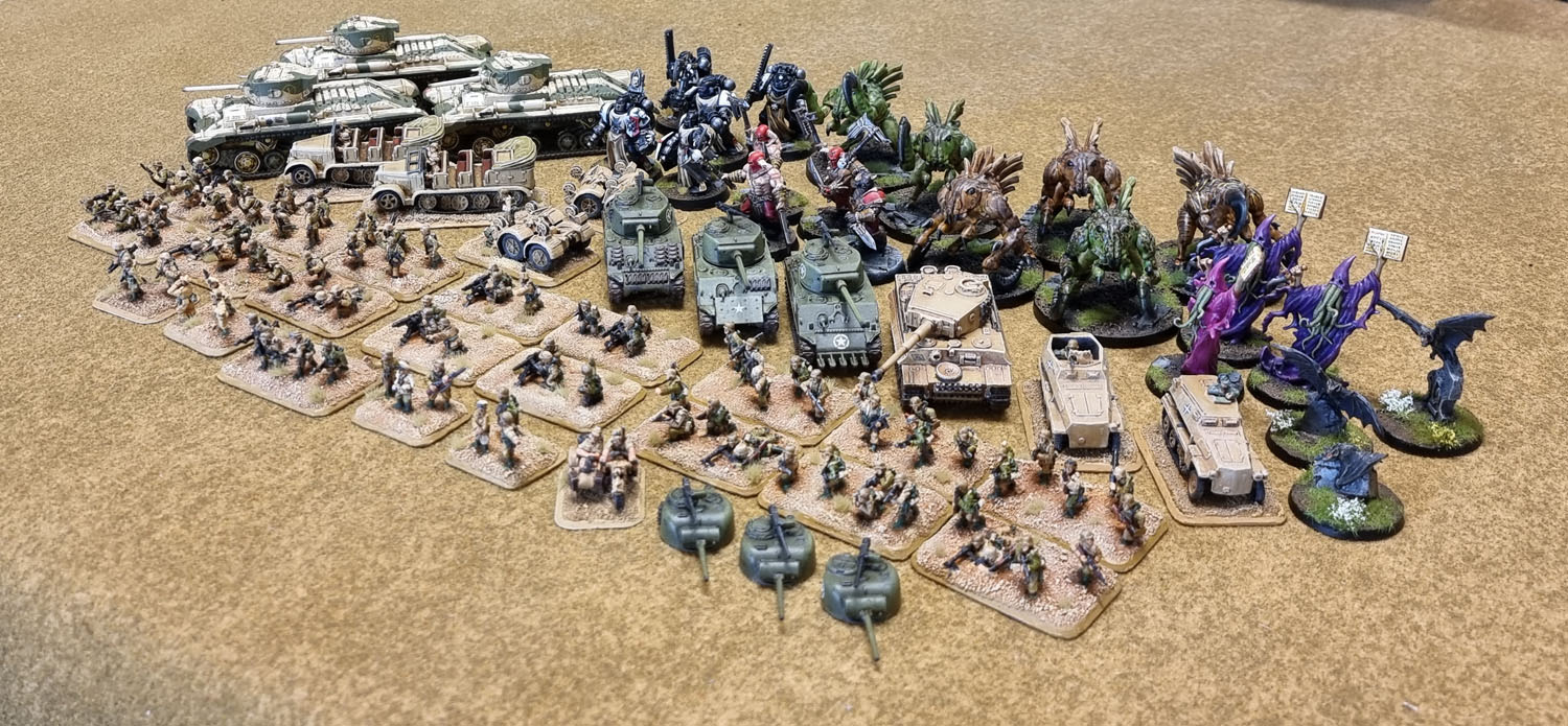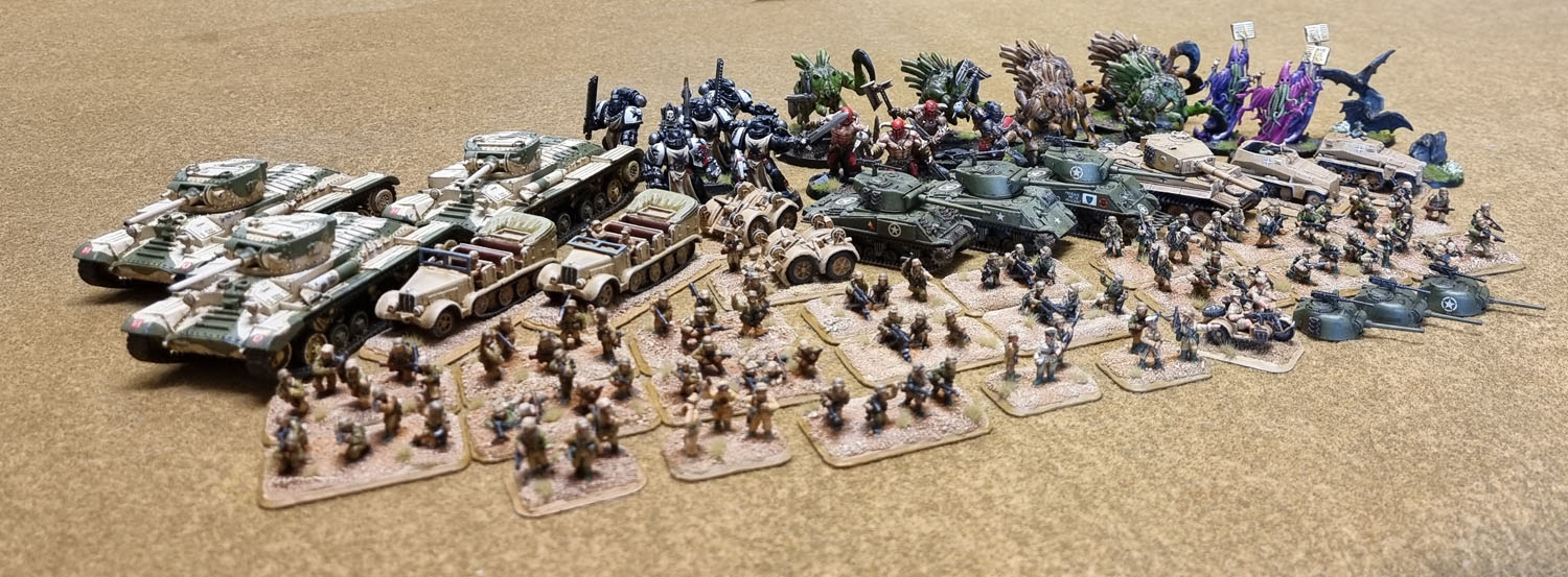 In terms of figures, July obviously gets a high batting number due to all of the individual 15mm Afrika Korps Grenadiers on those multibases. It’s the old “does a cavalry model count as one figure, or two?” discussion, really. Since none of it makes a difference to anyone else in the world, I’m going with what works for (and more importantly, motivates) me. Which is especially important when painting nightmarish little 15mm infantry en masse. So that’s counting each indiviually painted Grenadier on foot, but not counting the extra Sherman turrets as *anything* and the individual vehicle crew as part of the vehicles, including the sidecar. So 127 models for July.