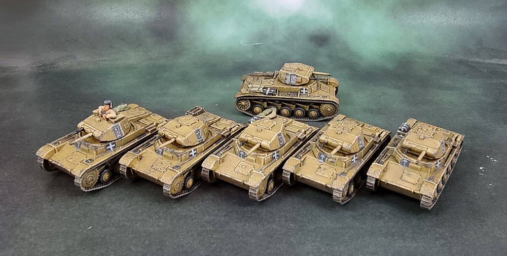 I thought a scale shot would work well here – these things are tiny! Apparently the Zvezda PzIIs are a little undersized compared to their equivalent Battlefront models, but it’s only by a couple of millimetres, and it’s not like it’ll make a meaningful difference on the table. They were also particularly quick and easy to assemble and then paint, so these were an unusually pleasant hobby experience.