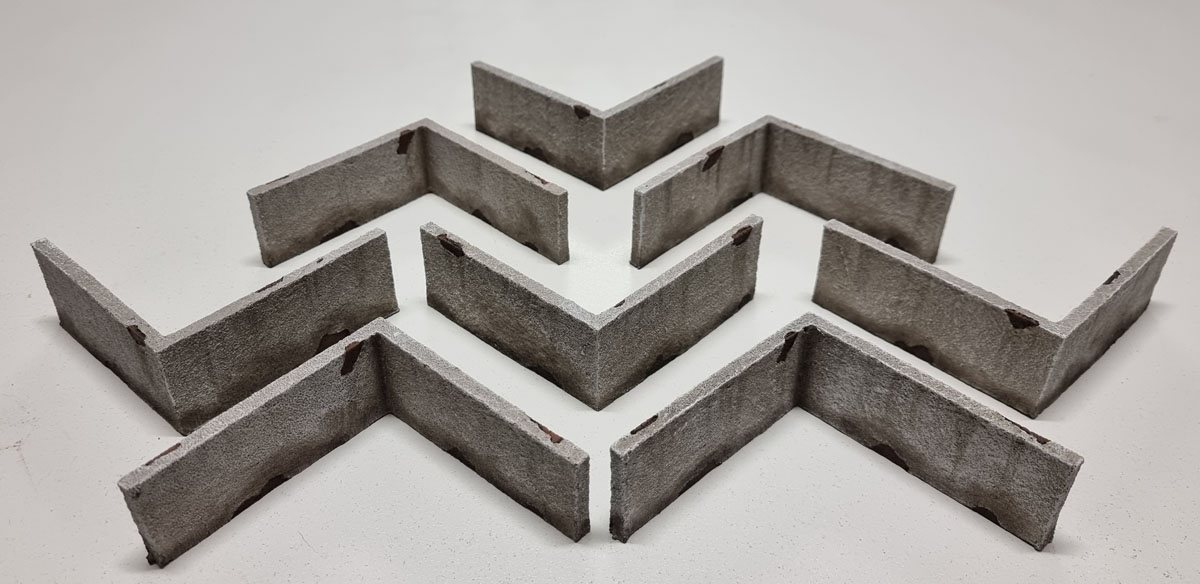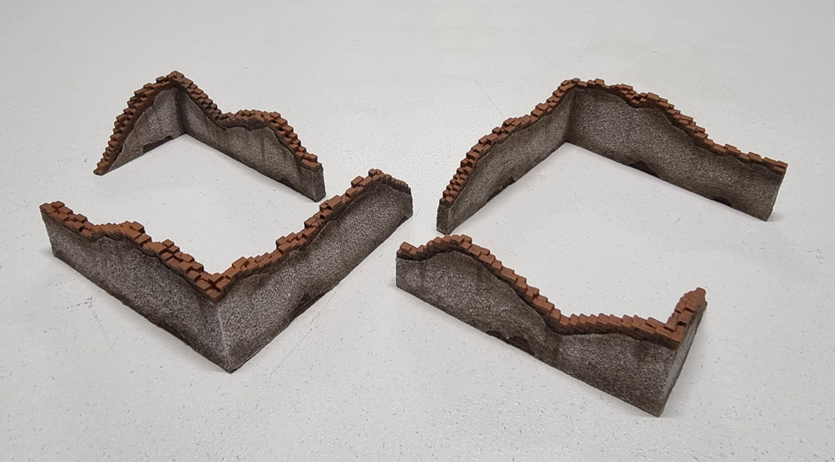 Here’s the short walls from all three sets. Griming all of these up wasn’t difficult, but it was bloody tedious!
