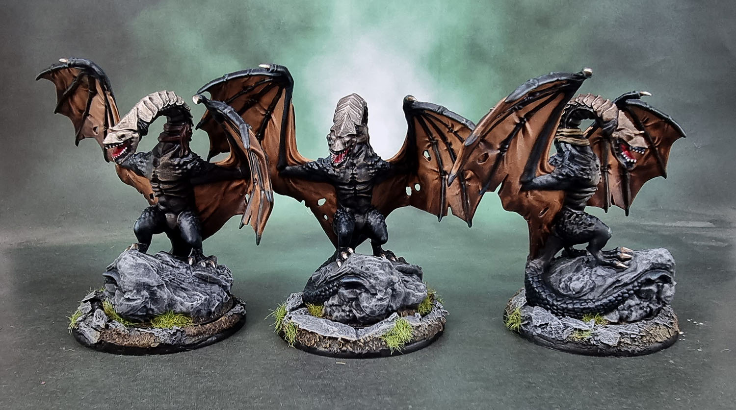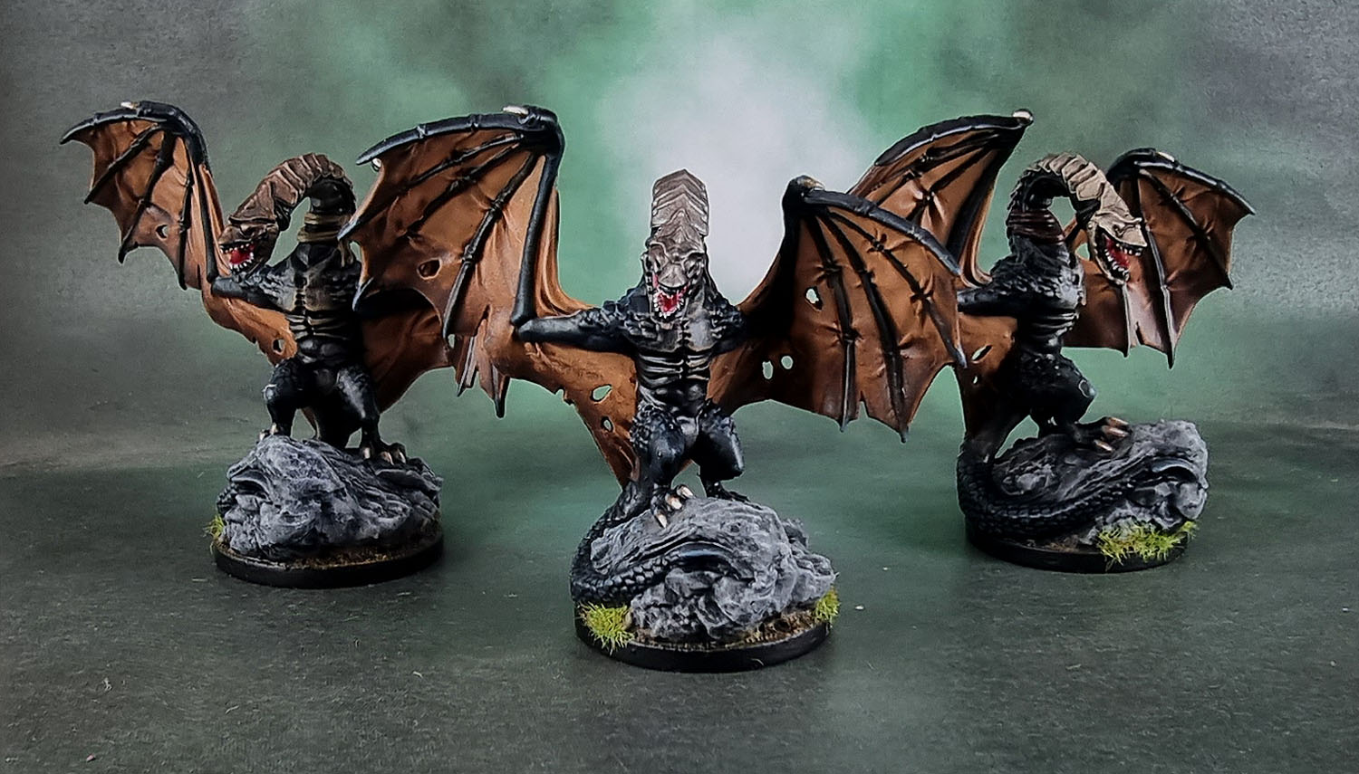 I’m pretty happy with how their wings turned out. They were done over sevearal days – just doing a little bit after work. Using some washes, glazes, blending and even some drybrushing. I feel that it makes these board game models look pretty nice, and was also some really useful practise for larger monsters and other models, such as dragons and the like.