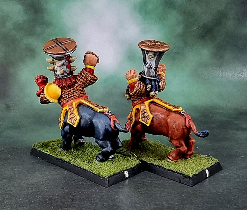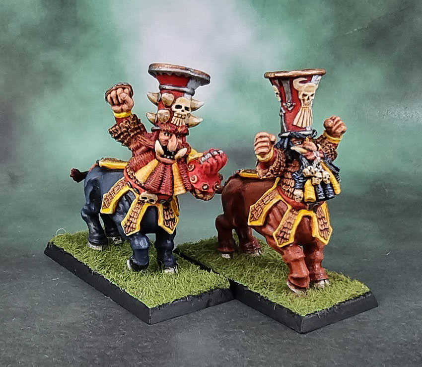 I differentiated the three of them subtly – their armour and bindings are each slightly different colours. This is so the three can be used together while having enough differentiation that people (or even just I) can tell them apart in a board gaming context.
