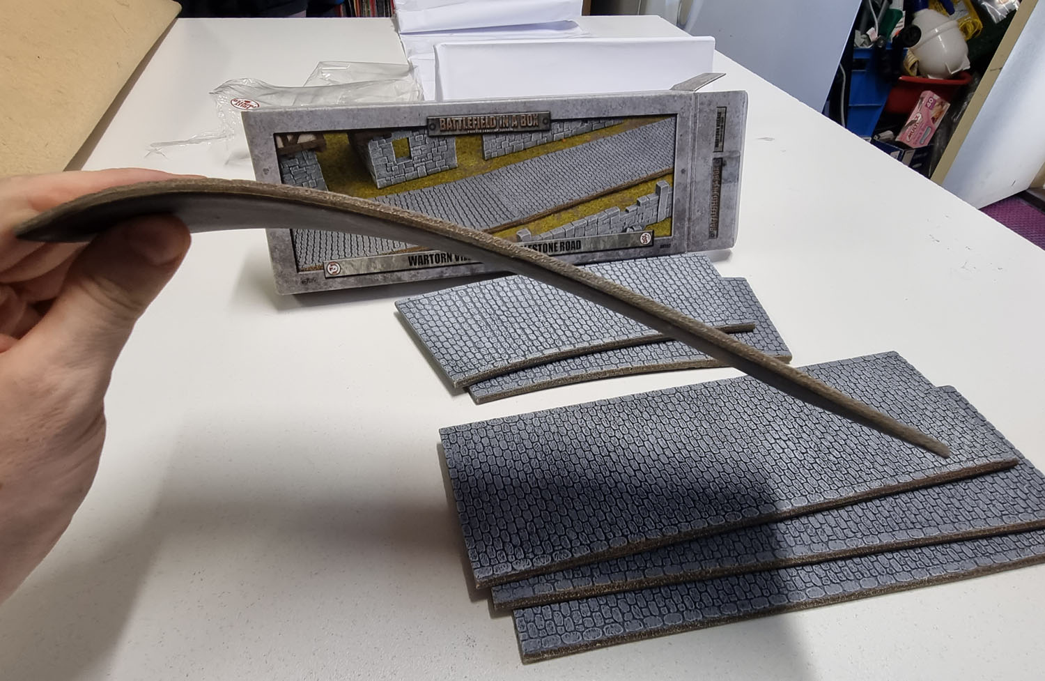 Scale shot with 28/32mm Warhammer Fantasy and 40k models. Not a huge road by any means, but very useable nonetheless. I could see laying two of them side-by side for more significant roads if you had enough segments. What this means in real terms is that I will use these roads for fantasy and historical games as well. I’ll use these when I play Saga, Bolt Action, Lord of the Rings, Kings of War, Age of Sigmar, and even those games of 40k where the battle occurs across battlefields more reminiscent of WWII Europe than a Playmobil factory with the same 40k terrain kits we see in every box and batrep (if you’ve been playing 40k for awhile, you’ll remember these games). I love versatile terrain like this.