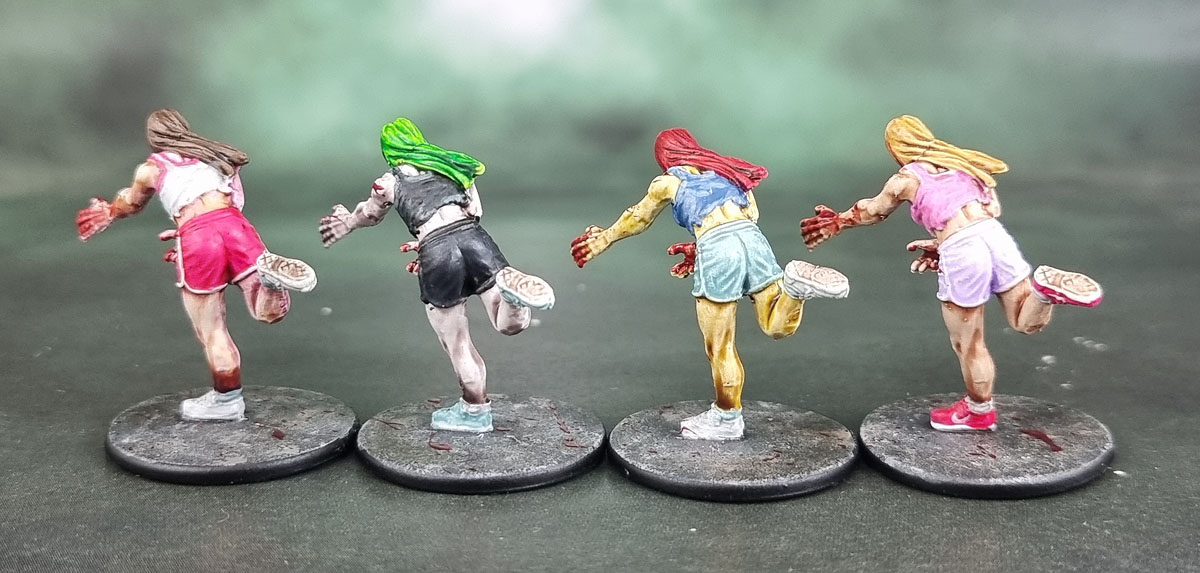So in the time so far this month I started on the other half of my Zombicide 1st Edition Runners. The other 12 of them. Twelve. The second dozen. We have a guy who likes all-Adidas everything, and another who enjoys Jello.