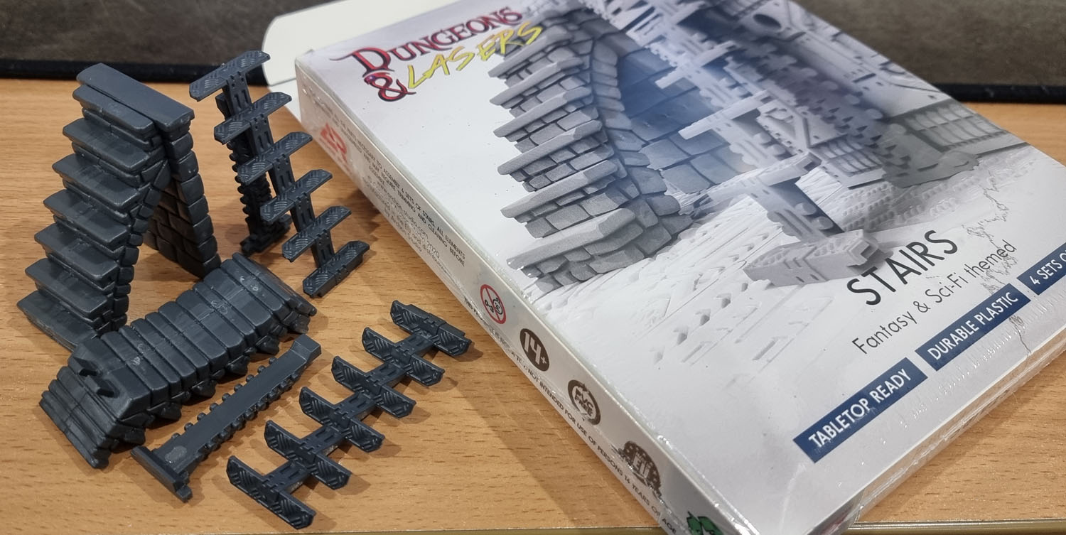 My verdict? The sci-fi stairs are a disappointment. They’re small and not especially stable. Even for a game you’d want to blu-tac them to whatever they’re being attached to for that game, and they don’t have the “perch a model on them” gimmick that the Wooden Town Stairs Set had. The fantasy stairs are unexciting but solid, and by far the better model from the two types in this set. If you can get these cheap – and have use for both types – then by all means pick these up, but keep your expectations quite …reserved and you won’t be disappointed.