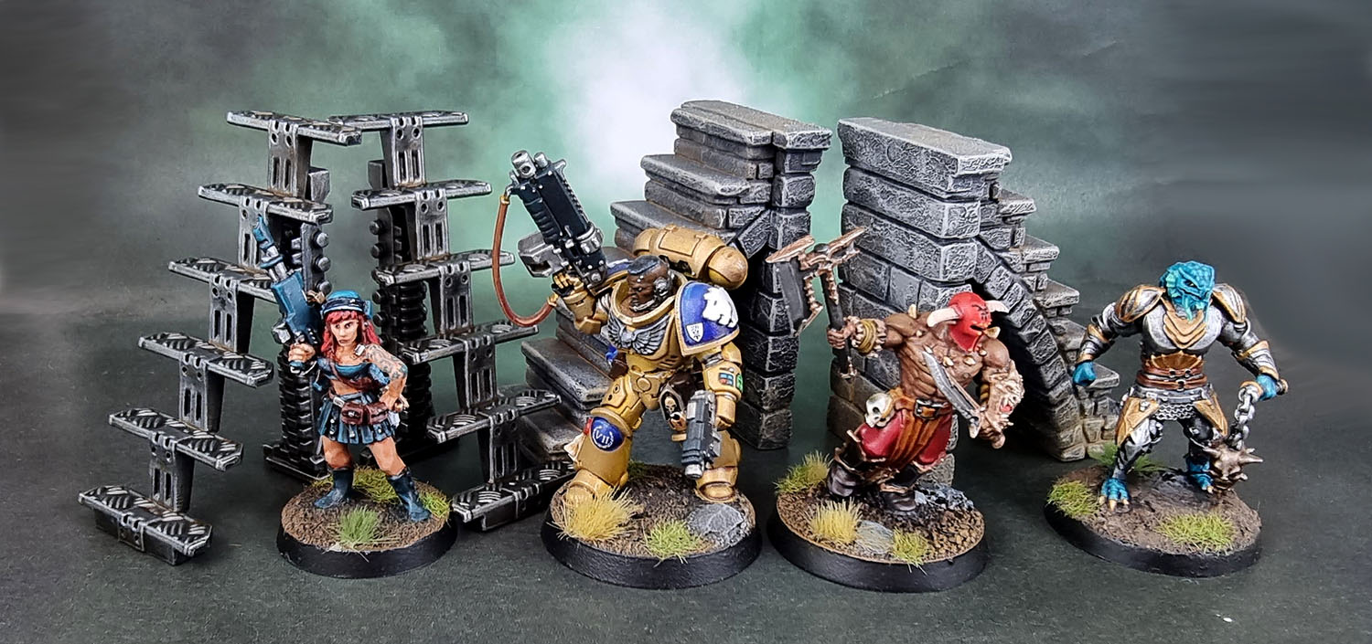 A bit of an odd way to do them – both will work for 40k-ish gaming, but the stone ones don’t work so well for more tech-oriented sci-fi, even Necromunda, and obviously the sci-fi steps aren’t going to be super useful for fantasy and D&D players. They’re fine for me since I play across genres, but it’s still an …interesting way to lump them together.