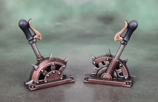 And finally, (though painted early in the month) there’s this pair of Levers from War Cry. I didn’t give them their own post because they’re not especially significant, and hoped/planned to get more War Cry stuff painted to go with them, but ended up leaning really hard into the Zombicide stuff instead. Still, I think they turned out pretty nice for such simple pieces.
