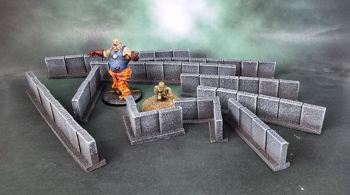 There are also a few other models I got done in October that didn’t get their own posts – another set of Concrete Walls from Battlefront’s Battlefield in a Box range. They’ll work for Flames of War, Team Yankee, and can even work as short walls for 28/32mm games as well – as can be seen here with the size comparison with Mr.Fatty!