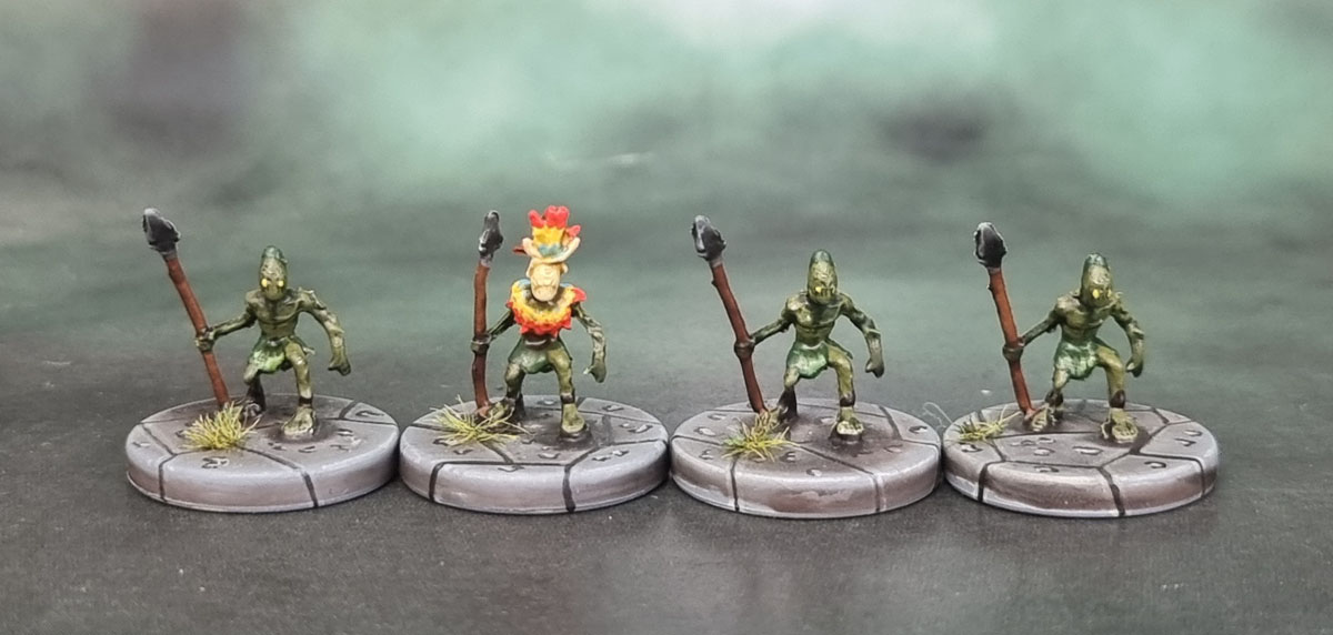 As I noted the other day, I was looking through some containers of models in December and found the Zombicide Crowz – in that same container, I found the Vegepygmies and Batiri Goblins – from the Tomb of Annihilation D&D board game, and decided to put in the (small) amount of required effort to get them painted up!