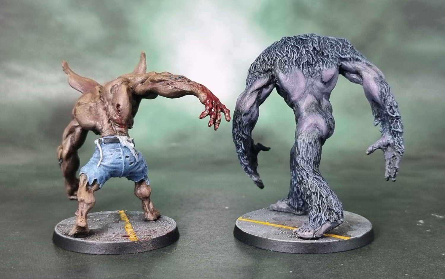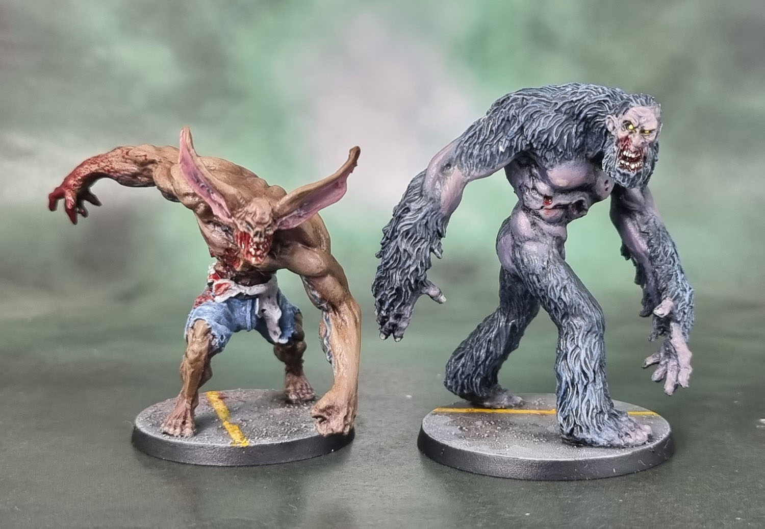 Another pair of Stretch Goal/Promo Abominations from Zombicide 2nd Edition. This time, it’s Bigfoot and the Batabomination. Once again, I’m submitting these two for Monster March over at Path of an Outcast. Again, these two models are Stretch Goal/Promo Abominations from Zombicide 2nd Edition. Bigfoot is pretty self-explanatory, and I do like how the sculptor has mimiced the classic walking pose seen in the infamous film and stills. The Batabomination is generally viewed by the Zombicide commuity as a *cough* homage to the Batman Villain, “Man-Bat” – and it’s pretty much a dead ringer, though lacking the webbed wings coming off the back of his veiny, muscular arms.