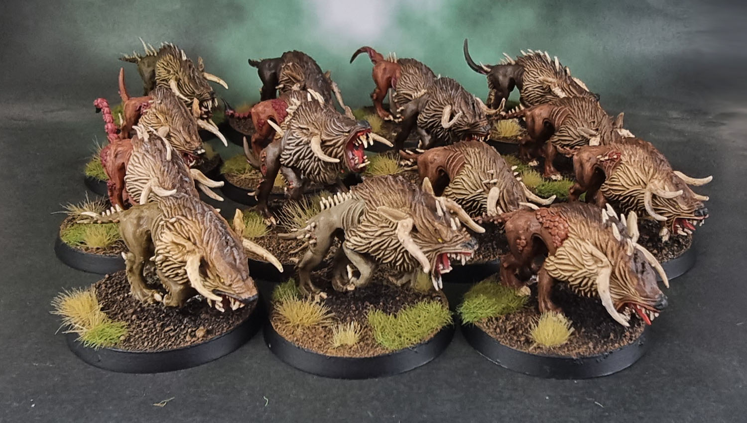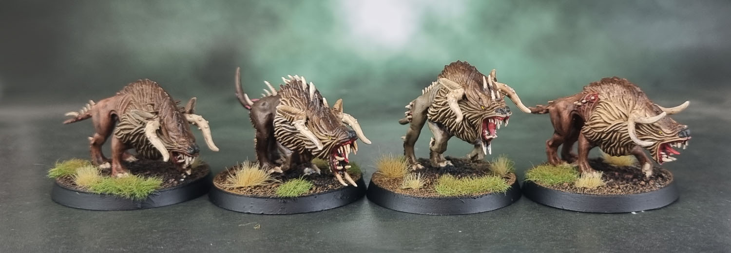 At this point, I’m very unlikely to use them as Wargs, as I now have a whole bunch of actual Warg models – so they’ll instead be used to bump up my slowly-growing Beastmen warband – either for skirmish games, AoS, or (eventually) a KoW “The Herd” army (once added to a MDF multibase rectangle or three). As such they also count toward my broader painting goals for 2023!