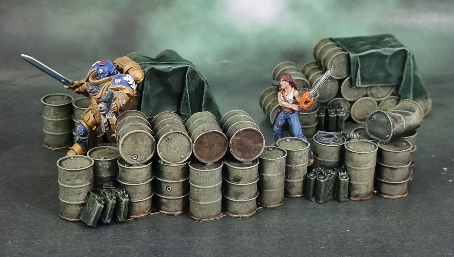 They don’t look too bad at all in their own cluster, and they look pretty decent next to both the regular human and the Primaris Marine – the issue with them is simply when placed alongside the “Tamiya-sized” barrels (which, by the way, is also the size of GW’s plastic barrels). On the other hand, these barrels do come in more than one size/capacity, so as long as these are kept to their own section of the board and not overly mixed in with the larger ones, it should all be good. Would I recommend these? Well, as I said, for historical games or games using smaller miniatures in the 25-28mm sphere I think they’d work nicely. For games like 40k, Star Wars Legion they could work in a pinch, or as long as you kept them away from the larger ones – and for even larger games like Crisis Protocol or Shatterpoint, I’d skip them entirely.