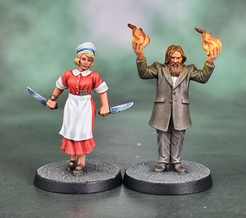 I’ve finished another pair of the Death May Die Investigators now – so I’ve caught up on last month’s missed models and have now completed a pair for July. The first is the Mad Monk himself, Grigori Yefimovich Rasputin, who – let’s face it – fits in pretty well with a Cthulhu game. In the character bio it talks about how he was captured and experimented on/tortured, with the result being his legendarily hard-to-kill constutution. Despite my misgivings about the technique generally, I did apply some subtle OSL to the model and it’s turned out okay without discolouring the rest of the effort painting him too badly.
