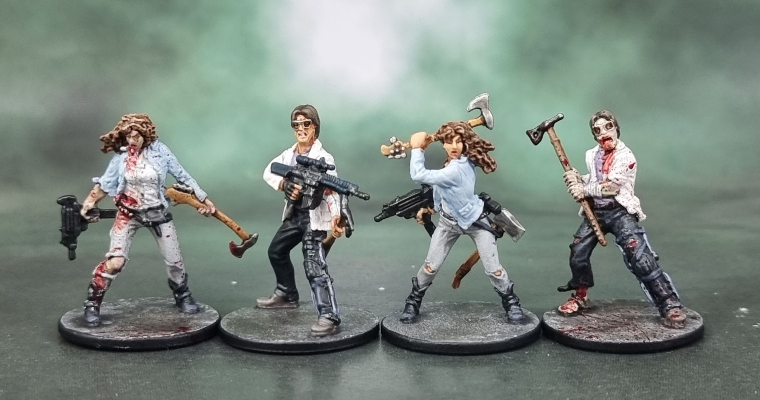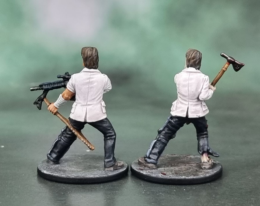 Following with the light theme of theming these Zombicide Survivor posts, the two models we have today both come from the Angry Neighbors expansion. Despite some superficial resemblances to 1980’s celebrities, it turns out that this pair of Survivors simply paid CMoN a shitload of money via the “I Am Legend” pledge level to be included in the game as playable characters. And there I thought we might have had references to Tiffany and Don Johnson.