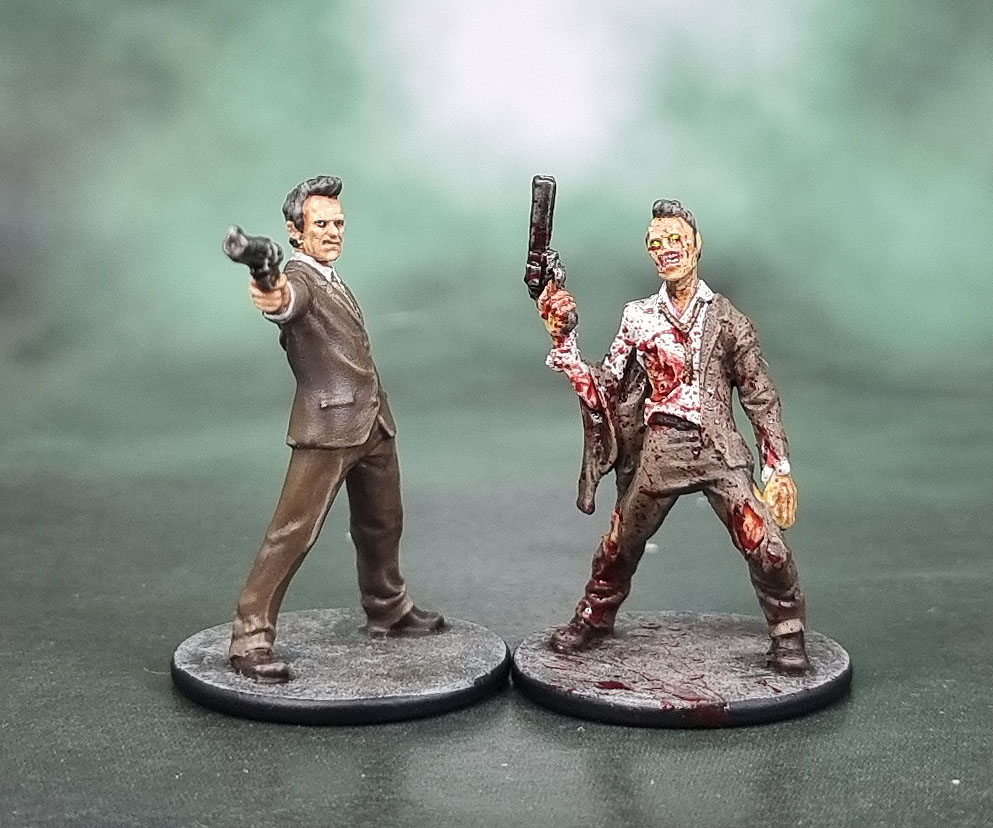 The newer of the two is “Brad”, who is clearly Zombicide’s take on Dirty Harry Callahan. He’s dressed in the brown suit from the film in the artwork though his jacket on the model buttons up on the wrong side. His .44 Magnum may also be somewhat on the comically large side, but then again, this is Zombicide, not a documentary on the making of Dirty Harry, so an element of exaggeration is fine.