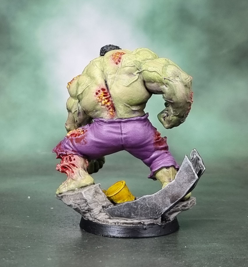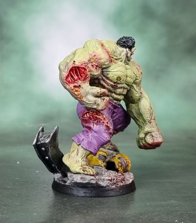 Today we have a rather well-known character from CMON’s Marvel Zombies games. Hulk! I’ve only painted the Zombie version here, as the key part of Hulk’s costume is simply his shredded-but-stretchy (purple!) pants.