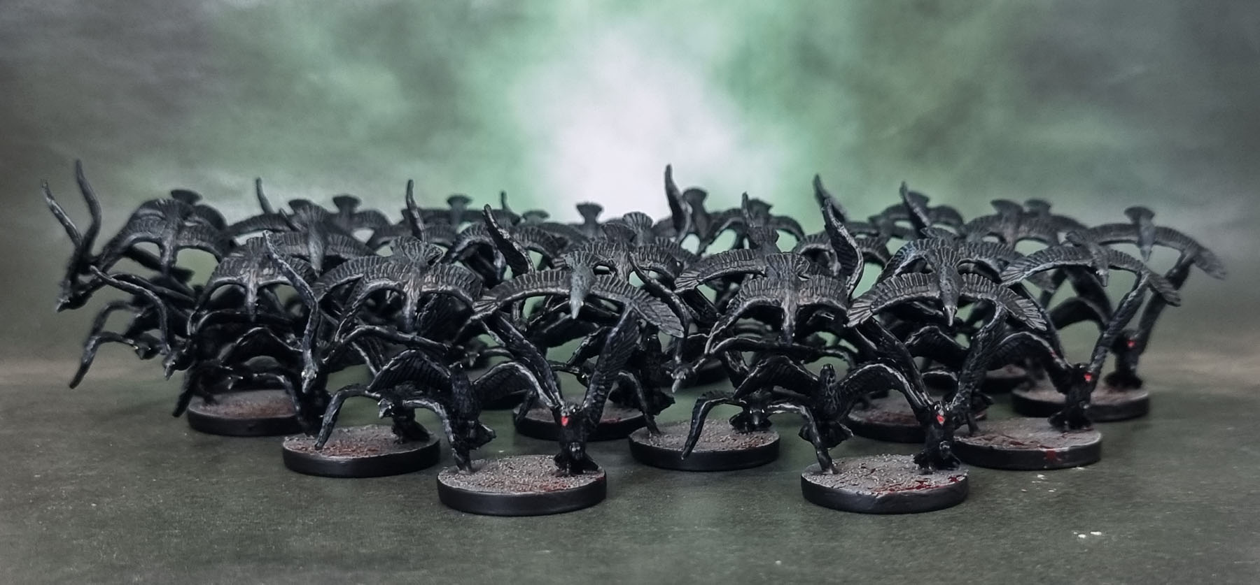I just gave them simple grey, lightly-textured bases. I mulled over adding some road markings to them, which would have looked a bit better, but this way they’re very usable in Black Plague as well as still being fairly incongruous in any other fantasy games. Like, if I ever need Ravens alongside Vikings – or Razorwings for my Dark Eldar/Drukhari. Not to mention a Hitchcockian nightmare for our Zombicide games.