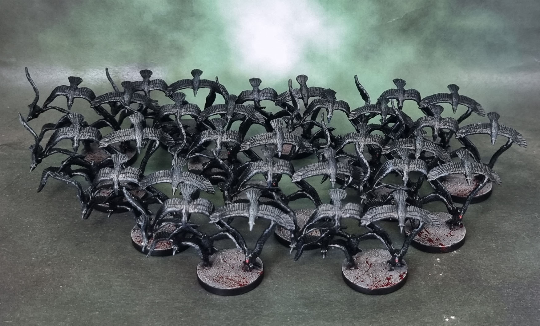 Today we have the entirety of the Zombicide 1e Boxed set “Murder of Crowz”. I think I had two sets of these, and painted five of them a year ago with rural/fantasy-style basing – as I’d picked them out to use as Dark Eldar Razorwing proxies years ago (still need to set up 40mm nesting bases for those ones) I never found the rest of that boxed set – so there’s 10 more of these Crowz missing somewhere!
