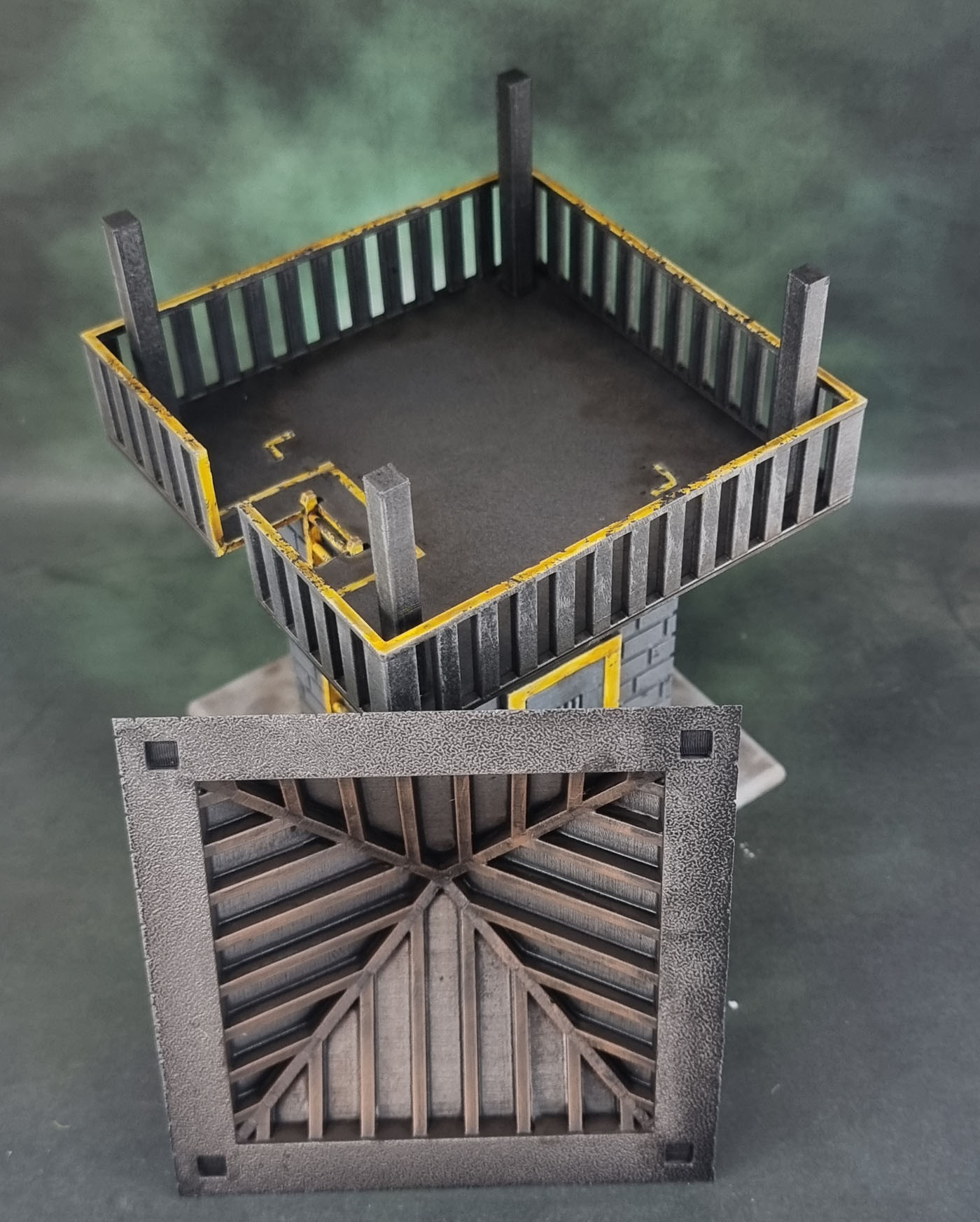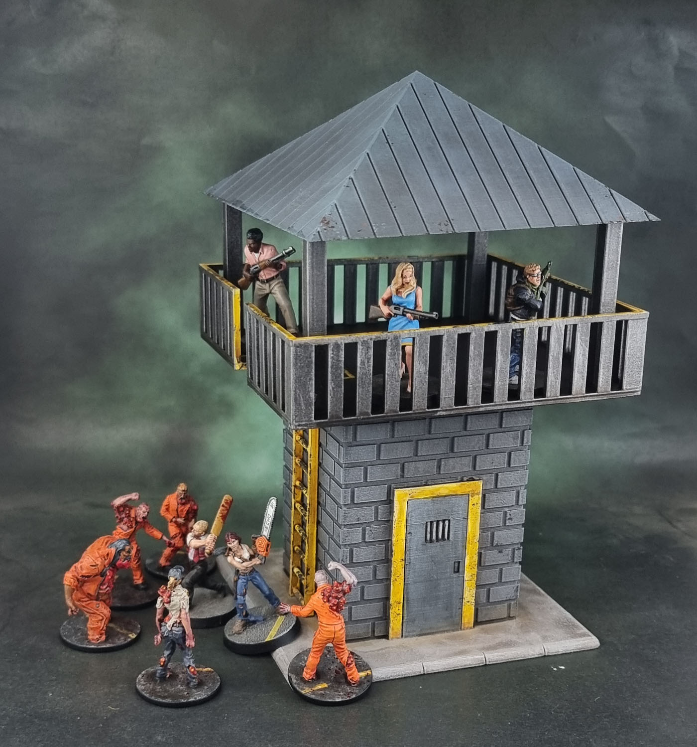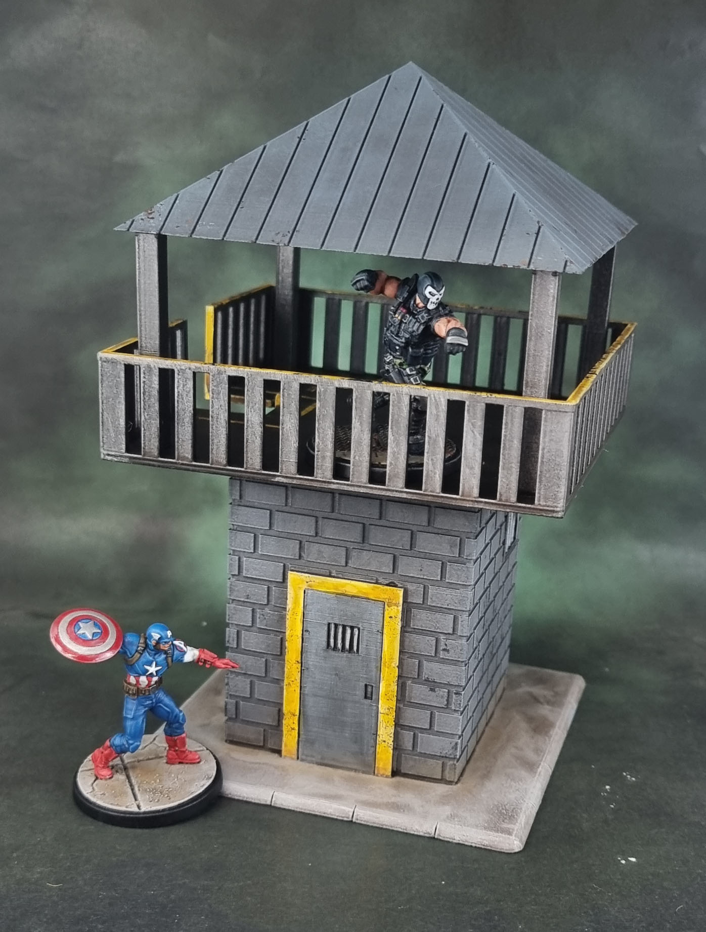It also turns out that this tower fits the “close enough” scale to be used in Marvel Crisis Protocol, which means that aside from Zombicide it’s got a use case for many modern game settings. It would probably work for WWII reasonably well with a different paintjob with more wood and less OH&S yellow!