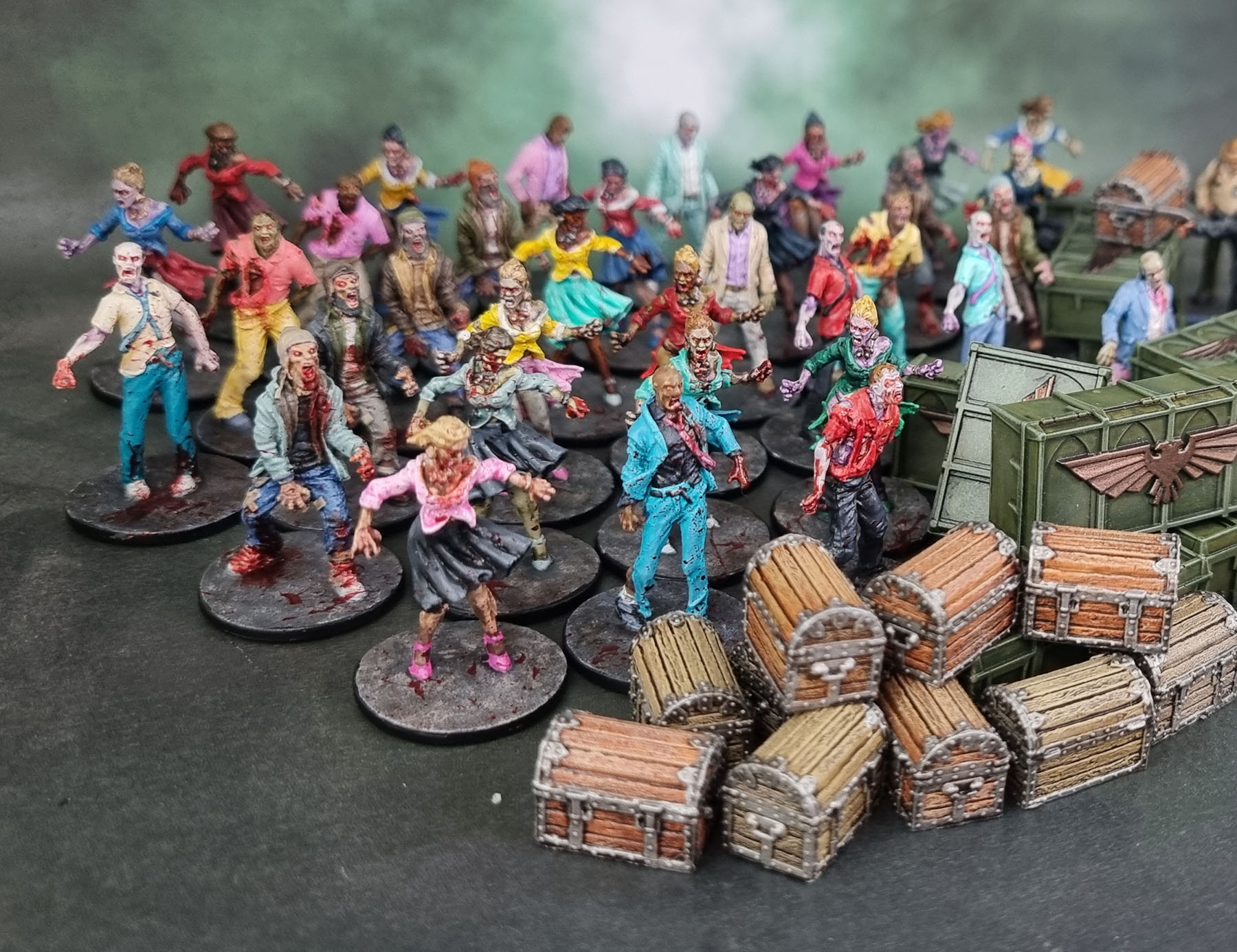 34 Zombies, 4 Mars Attacks models, 4 Last Night on Earthers, 12 chests (one is MIA, but I painted it!) & 10 Munitorum crates. So that’s 64 models. Even with the caveat of all those barrels and crates, it ain’t too bad actually! Add those to the 359 I’d painted up to November, and I have a total of **drum roll**….. 423 models and pieces of terrain. Huh. Not too shabby in the end, despite my posting being quite sporadic.