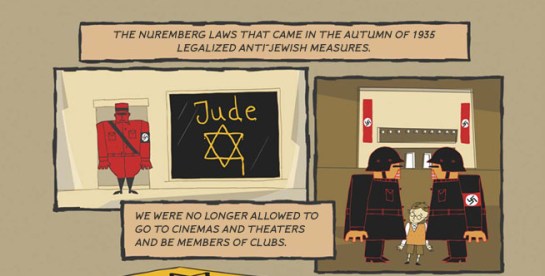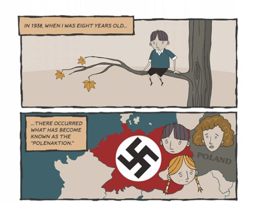 Little niggles – Martin’s story begins with the Polenaktion, though it doesn’t explain where Martin’s familiy originated from, which is something that would have the capacity to make the story a little more impactful, especially to younger readers that this graphic novel is aimed at. This is sort of rectified later, but I feel that not explaining it as part of the narrative causes the *full* impact of that story to be lost.