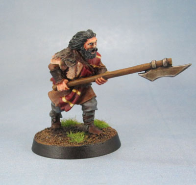 I repainted this guy as a ginger, as opposed to the dirty unkempt grey/white beard that he originally had when I was trying to be more movie-accurate to Jackson’s films. When I threw that out and decided to go Celt, I almost painted the top guy as blonde, until I remembered the comments about Rohirrim as “straw-heads” in the (books? films?), so I toned it down to brown. Of course, that just applies to these three, and my actual (eventual) Celts will have plenty of blonde and bleached hair amongst them! There is a fourth sculpt that I don’t have. I’m not going to chase it, but if I happen to see it for a reasonable/cheap price someday, I’m sure I’ll pick it up.
