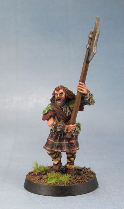 I’m particularly happy with how the tartan patterns came out on this guy. I drew inspiration not from modern Scottish tartans, but (obviously) from the Celts’ long history of woven clothing and cloth. I didn’t convert the weapons or add shields as FB did, as I tend to like to keep my “first” one of any given figure untouched, unless I purchased it for that purpose, or it’s otherwise an irredeemable/seriously flawed sculpt. So these guys are Wildmen of Dunland, and when I have a bunch of my Warlord Games Celts painted up, they will also be Wildmen. Sometimes. Except in games where they’re all used as Celts, including the Wildmen. Who knows what the future of the table holds? Kings of War games with Saruman leading his Uruk-Hai army alongside his Celt allies led by Boudicca? Why not?