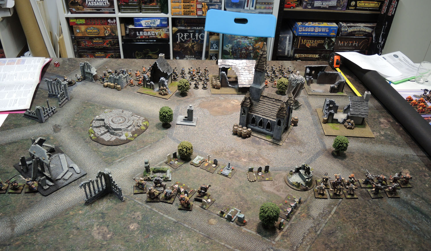 One thing that can’t be argued is that we had a good looking game of toy soldiers. While I consider the quality of my models and terrain to be pretty solid, quite honestly the mat really does add to it. And no, I’m not paid to say this and didn’t get a discount – if I were offered one I’d certainly accept it – as I accepted the stained Snow Territory 6’x4′ mat, but I’d also state it upfront in my reviews, as I did there.