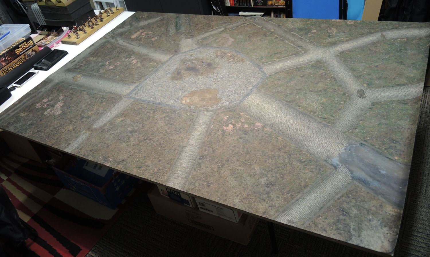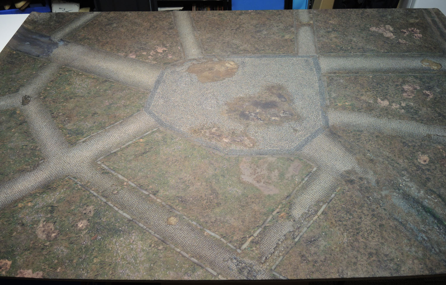 Here’s the last of the first batch of my gaming mat reviews of Urbanmatz‘ products from the Czech Republic. The Dirty Roads 6’x4′.