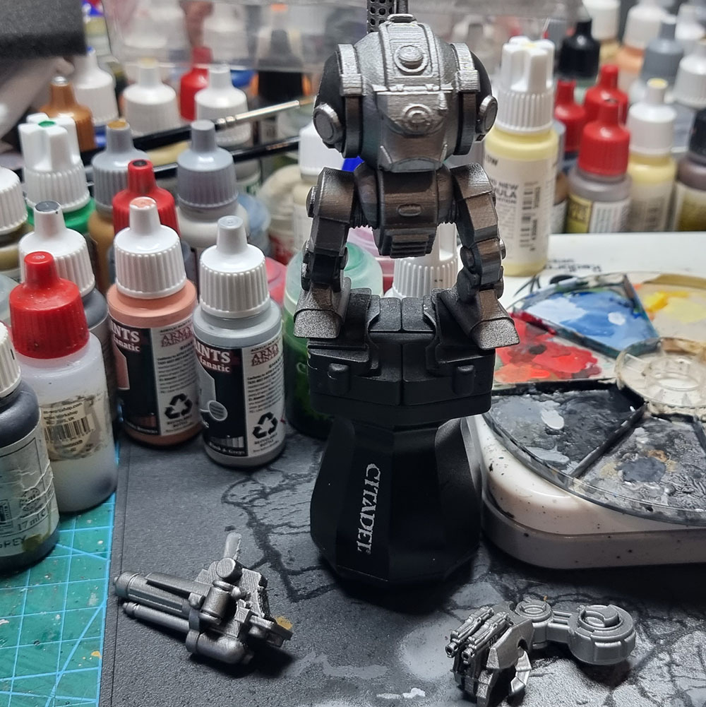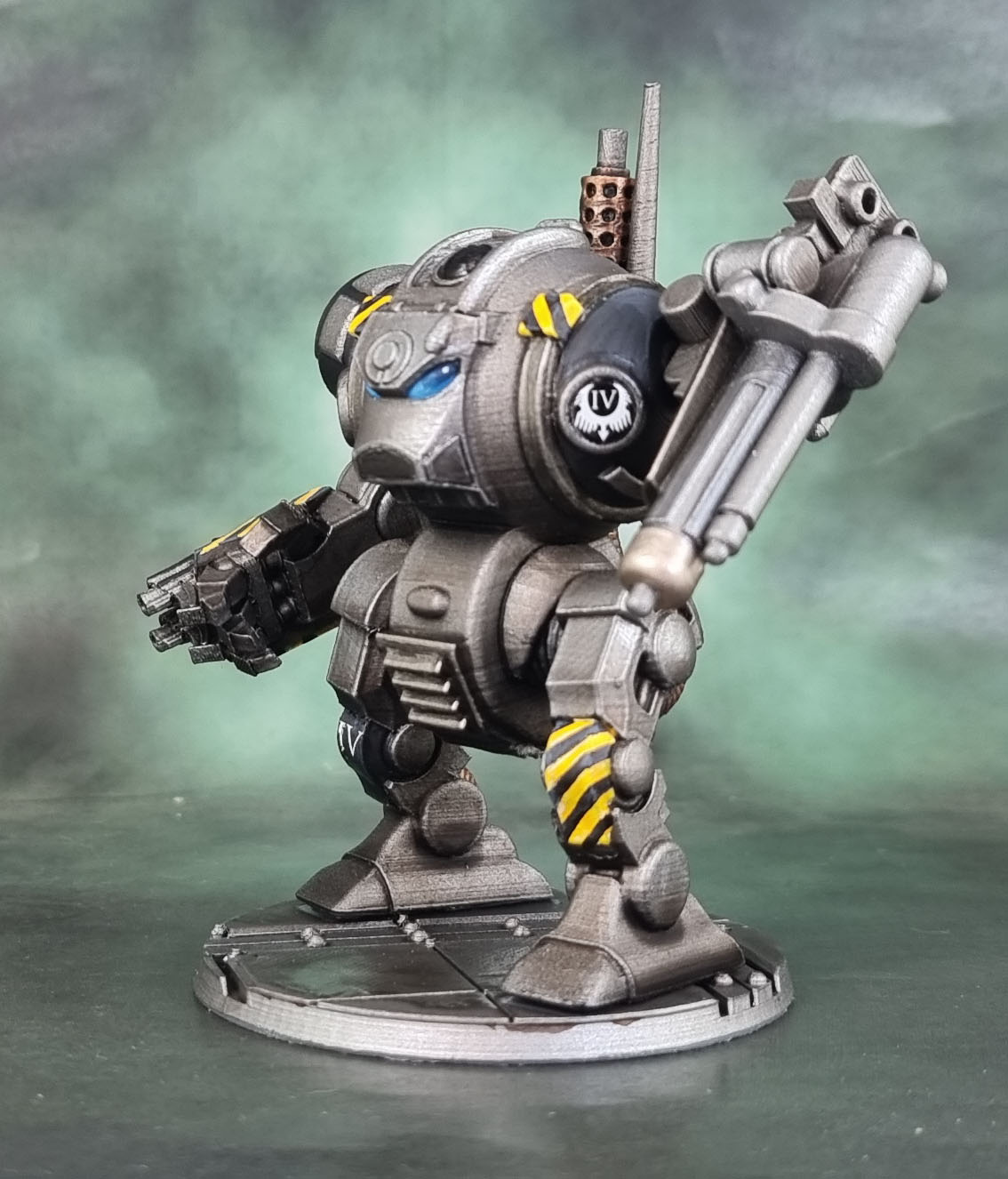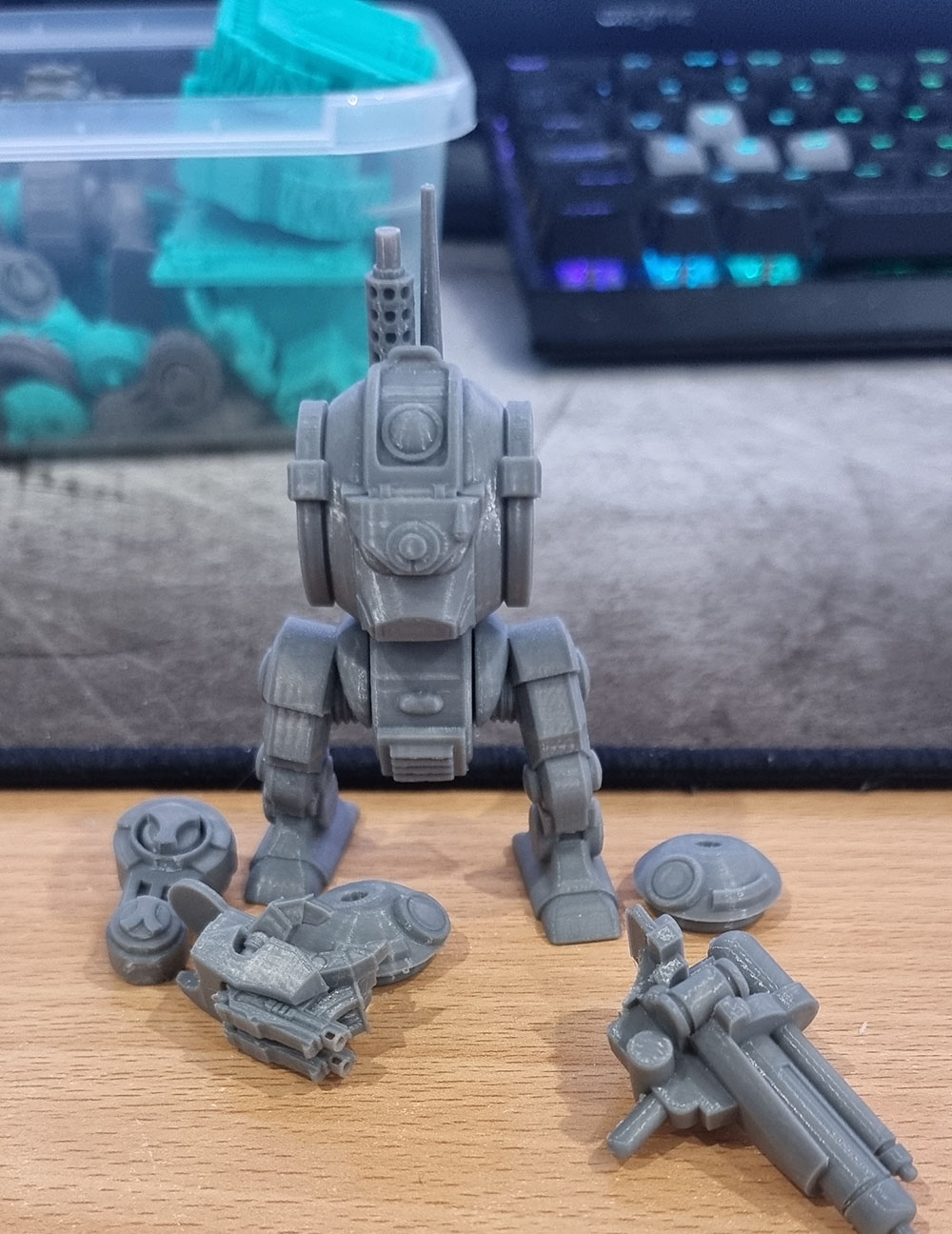 After looking around online, I decided to print it at 115% as people had suggested – at that enhanced size it fits more with the current Contemptor models, which is what people tend to use these as. I guess in a 40k situation it’d be a Hellbrute, but 40k has really messed up the whole Dreadnought situation pretty badly with their model/range culls of recent times. As someone who hasn’t actually played for far too long and has no interest in competitive play, IDGAF so I’ll just use it as whatever whenever I get back to friendly games.