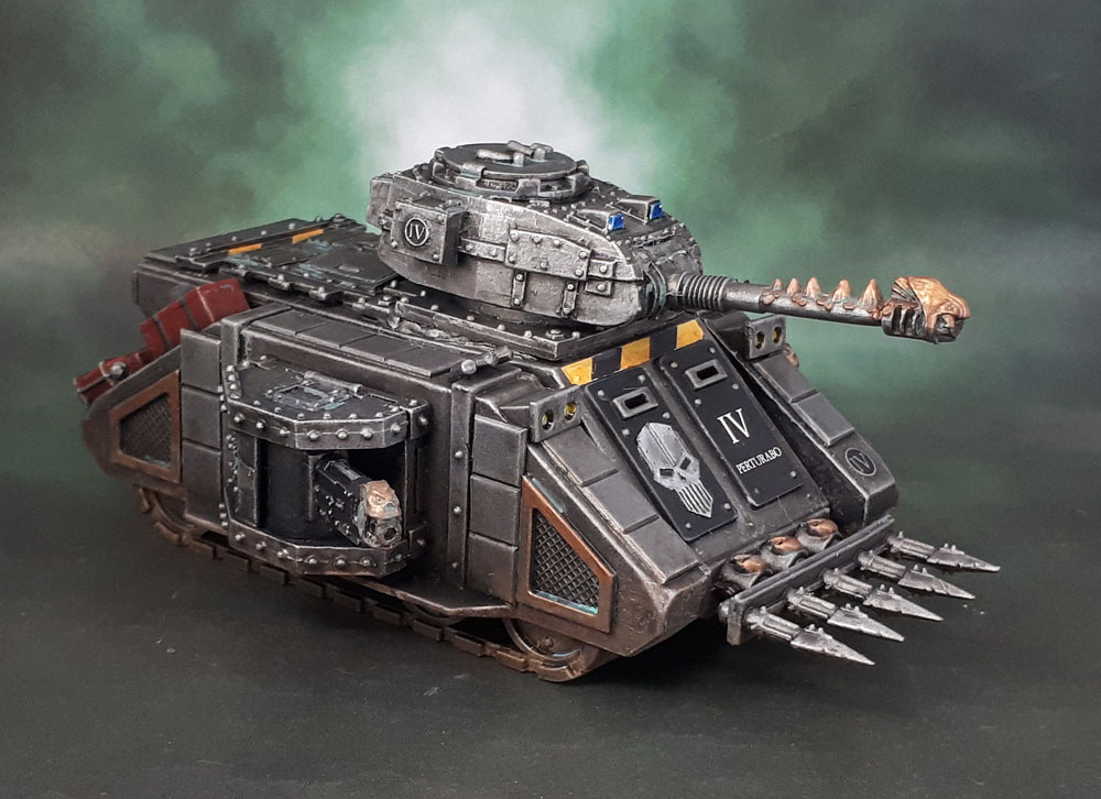 So how’d I go? Did I succeed? Well, yes and no. You can see the results in the picture above, but the caveat is that while I think it’s certainly table-ready, there are a few more things I still want to do with it. Weathering, more work on the base, possibly some greenstuff or guitar-wire cables on the old-school Lascannon, and I’m also not sure if I should add some more colours to the Lascannon.